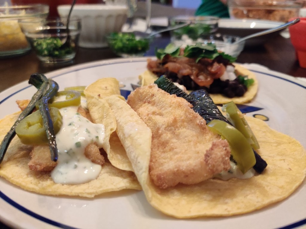The corn tortillas were awesome for the tacos, and I grilled a poblano to add a little more crunch to the taco. The pickled jalapeños were a no-brainer and I ended up adding more to my tacos to make up for the bland flavor of the fish.