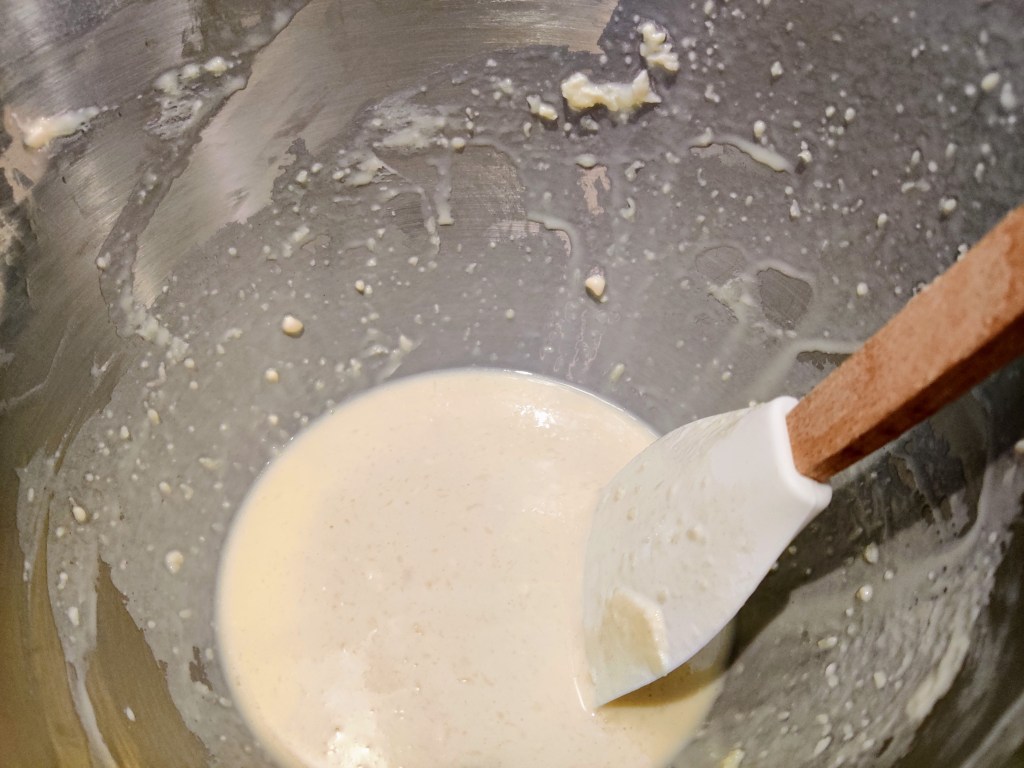 To get started, make the batter. A lot of professional chefs and bakers make their batter in a blender. I don’t have a good blender, so I use a kitchen aid mixer. I recommend using a blender for reasons listed below. After making the batter, make sure to let it rest for 30 minutes. During that time, you can make the fillings.