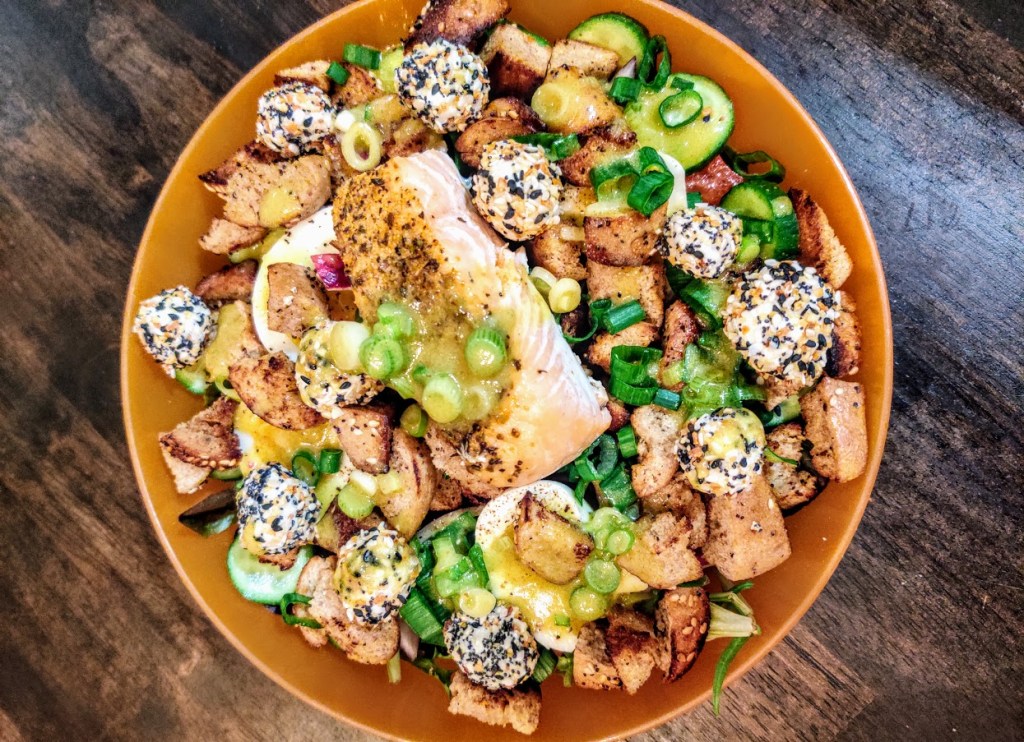 One of my favorite Sunday morning activities is watching Girl Meets Farm, Molly Yeh’s tv show on the Food Network. I was watching one of her brunch episodes and came across one of the most genius recipes I believe anyone can develop… an everything bagel salad! Two of my favorite foods combined! What a dream.