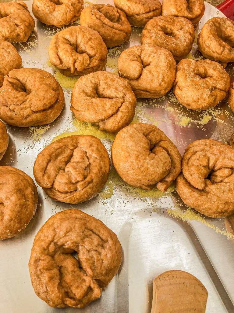 The bagels were surprisingly easy to make. Don’t try the snake method, you’ll notice a lot of them came undone that way.